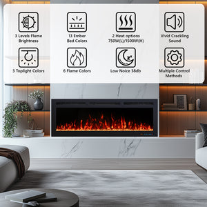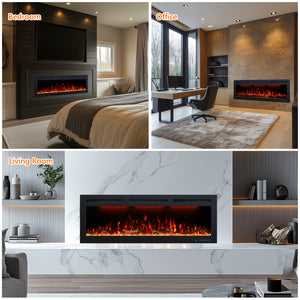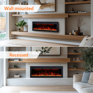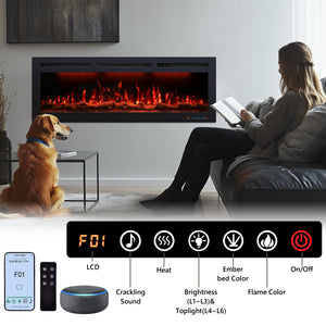 BIGP 50" WiFi-Enabled Recessed & Wall Mounted Electric Fireplace Smart Control via Alexa or App