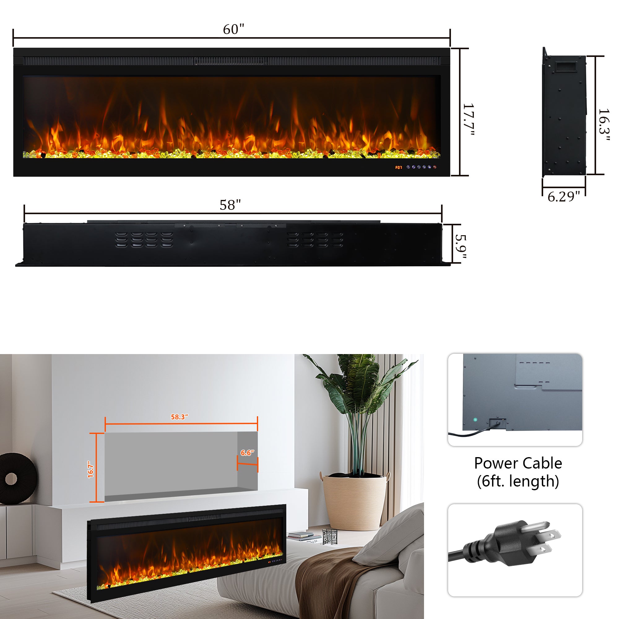 BIR 60" Electric Fireplace, APP & Touch Screen & Remote Control, 13X13 Flame Color Combinations, Timer & Thermostat Fireplace Heater