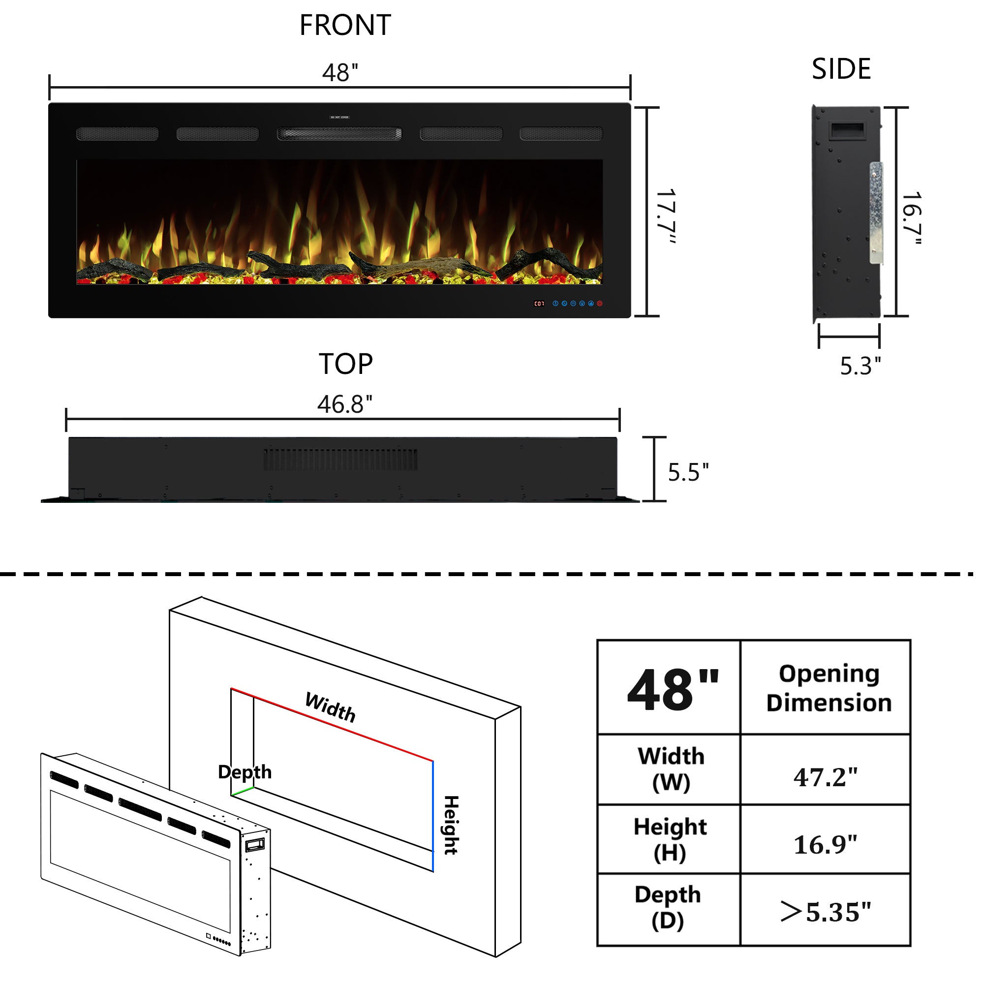 EFRpro 48" Smart Electric Fireplaces Inserts, Remote & Touch Screen & APP Control, Recessed & Wall-Mounted Fireplace Heater