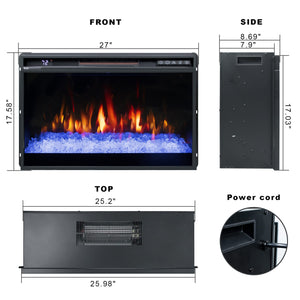 Dreamflame 26 Inches Electric Fireplace Inserts&1500W&Crystal