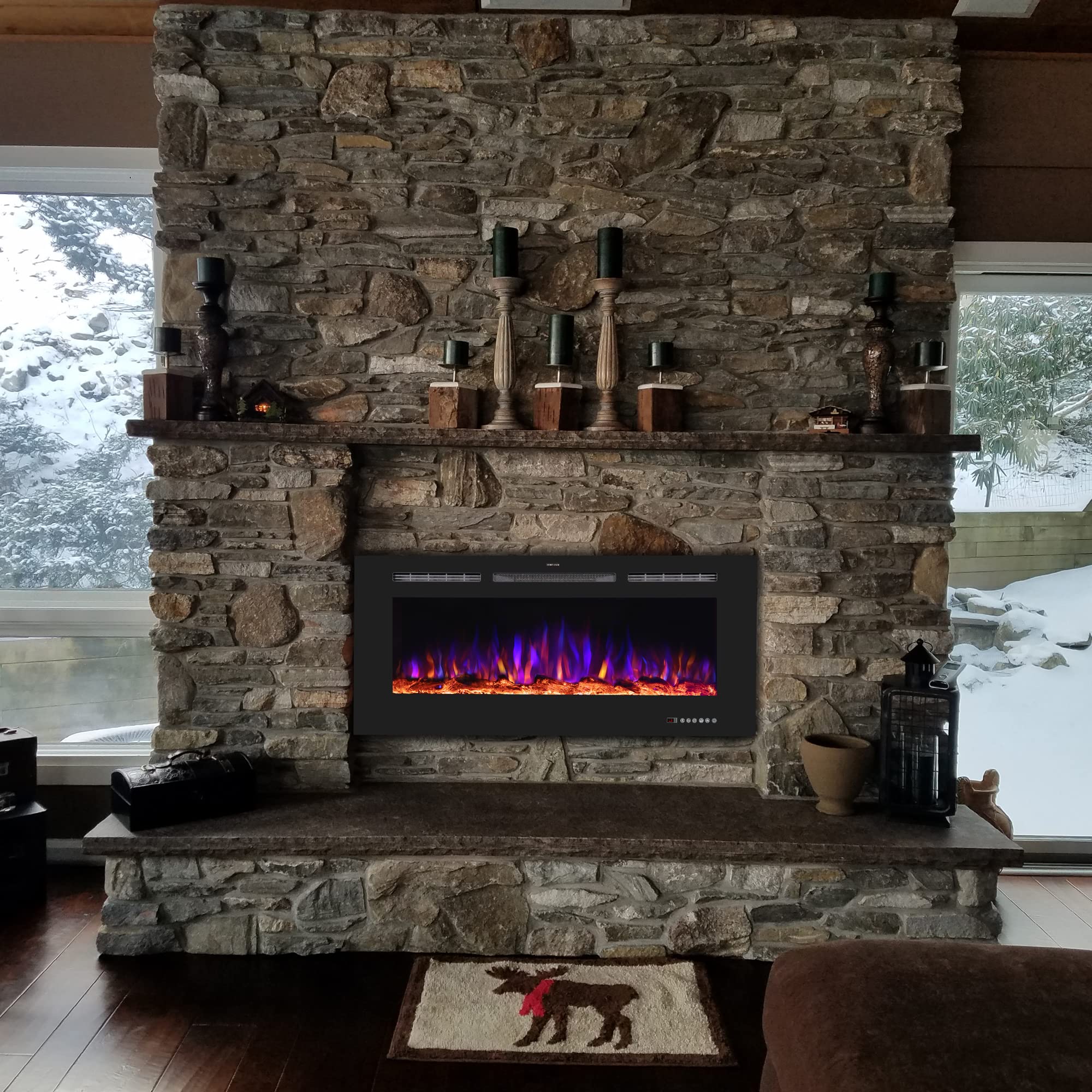 - 【Thermal effect energy saving】Fast heating, dual power 750W/1500W(5100BTU). Electric wall fireplaces are suitable for Spaces up to 400 square feet. The temperature can be set in 15 gears from 62°F to 86°F. The electric fireplace has built-in overheat protection, which automatically shuts down when the temperature is too high, keeping you and your family safe.