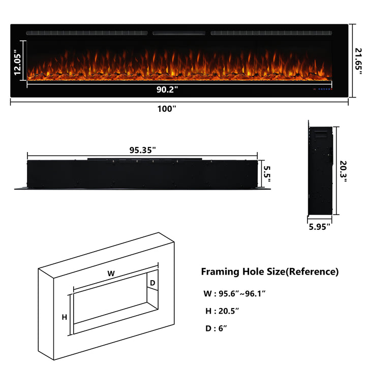- 【Easy installation】 Optional embedded and wall-mounted. When the fireplace is embedded in the wall, confirm the insertion size shown in the picture. With a hardwired design, the plug can be removed to save space. This ultra-thin electric fireplace heater can be operated by remote control and touchscreen panel, which is upgraded to LCD display.