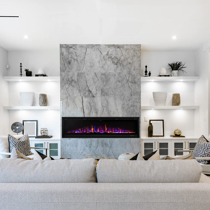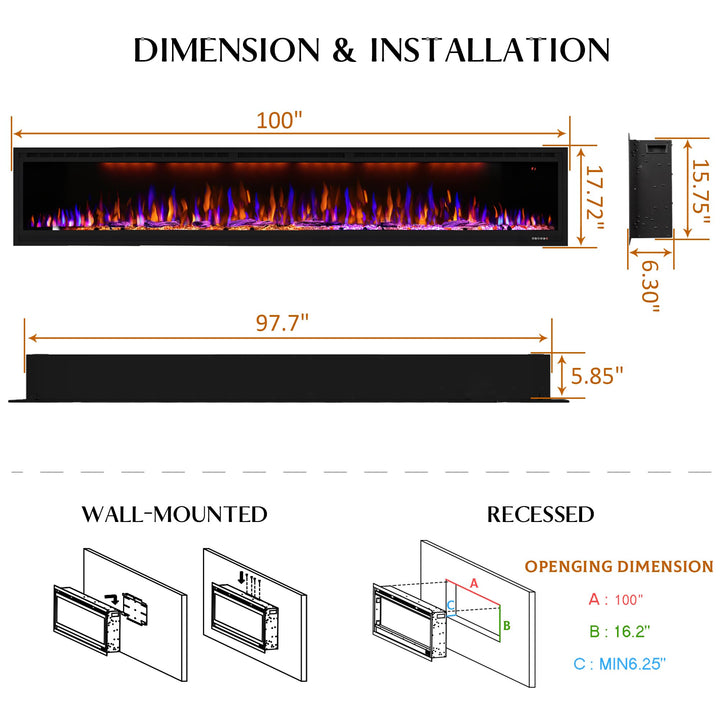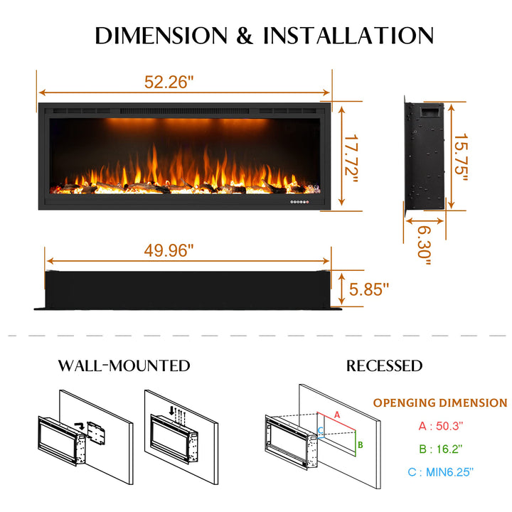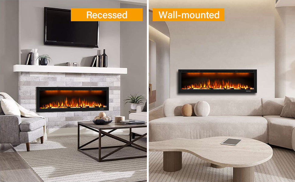 Dreamflame Electric Fireplace with Remote Control Wall-Mounted/Recessed&Top light