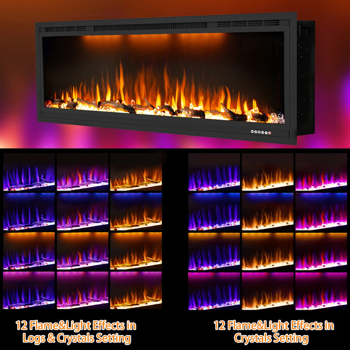 - 【Flame Effects】Simulated log and crystal ember beds can be used alone or in combination. 3 colors of top light, 3 flame colors, free adjustment and simulation of jumping fake fire flame, create a warm atmosphere.