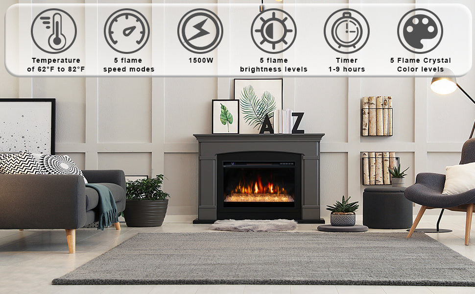 Dreamflame 26 Inches Electric Fireplace Inserts&1500W&Crystal