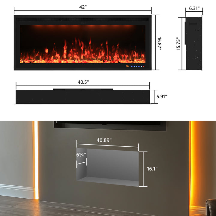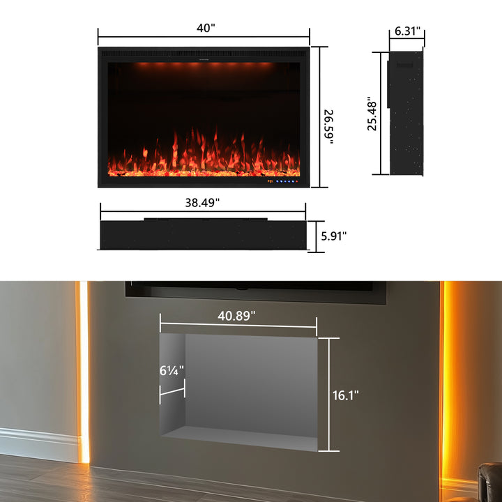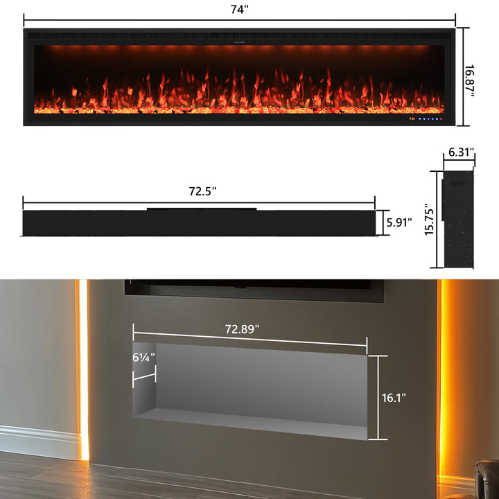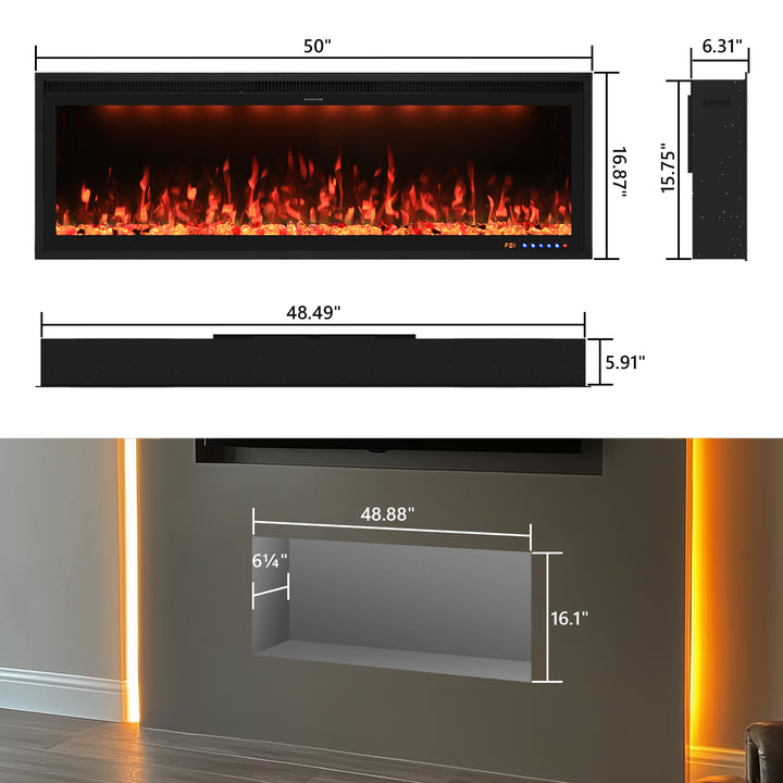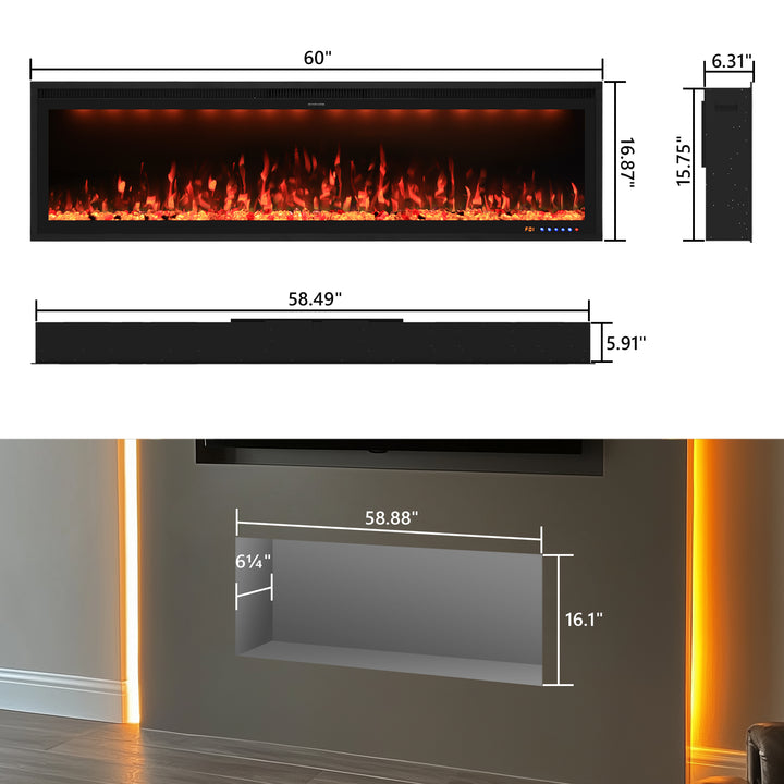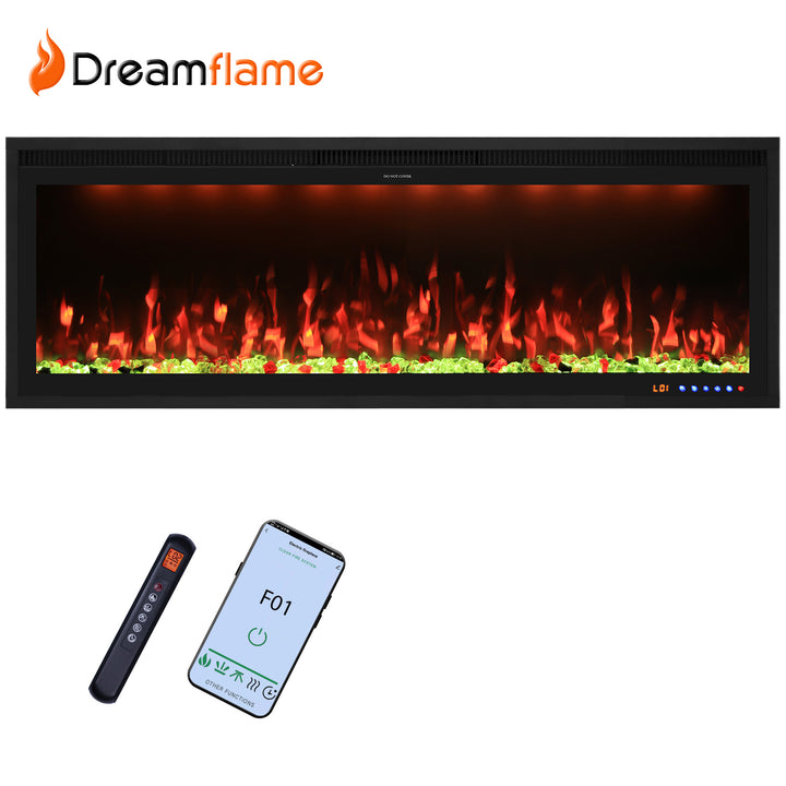Dreamflame Wall Mounted & Recessed Electric Fireplace with Adjustable Flame & Light, App & Voice Control, Remote Control-BIZ
