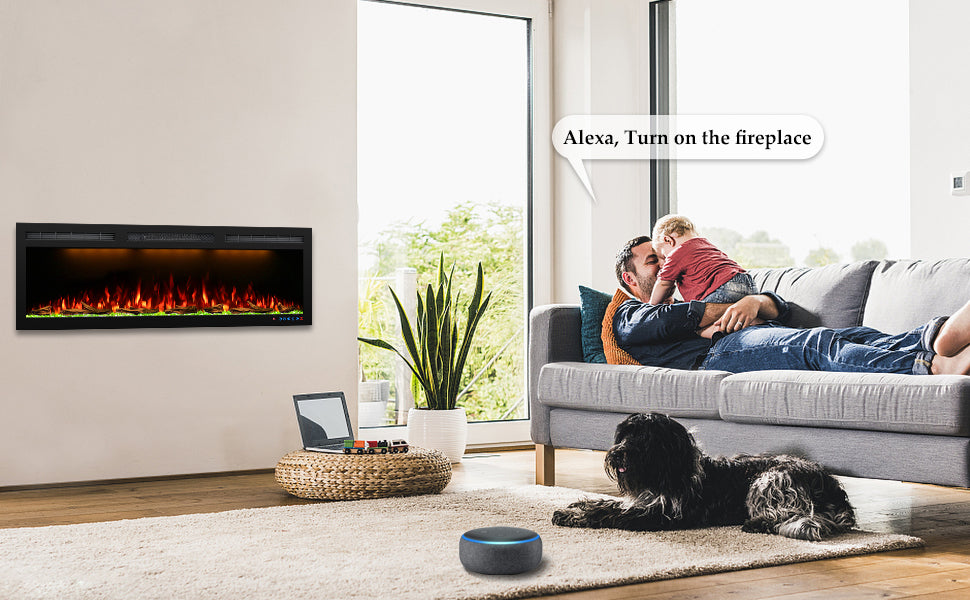 Dreamflame WiFi-Enabled Recessed & Wall Mounted Electric Fireplace Smart Control via Alexa or App-BIGP
