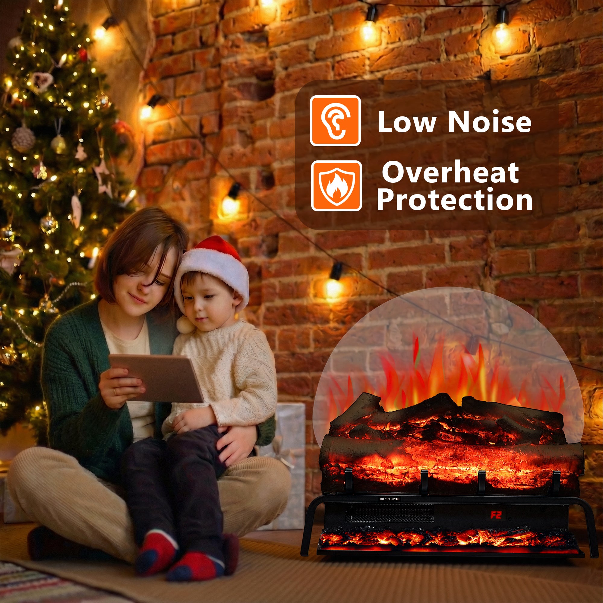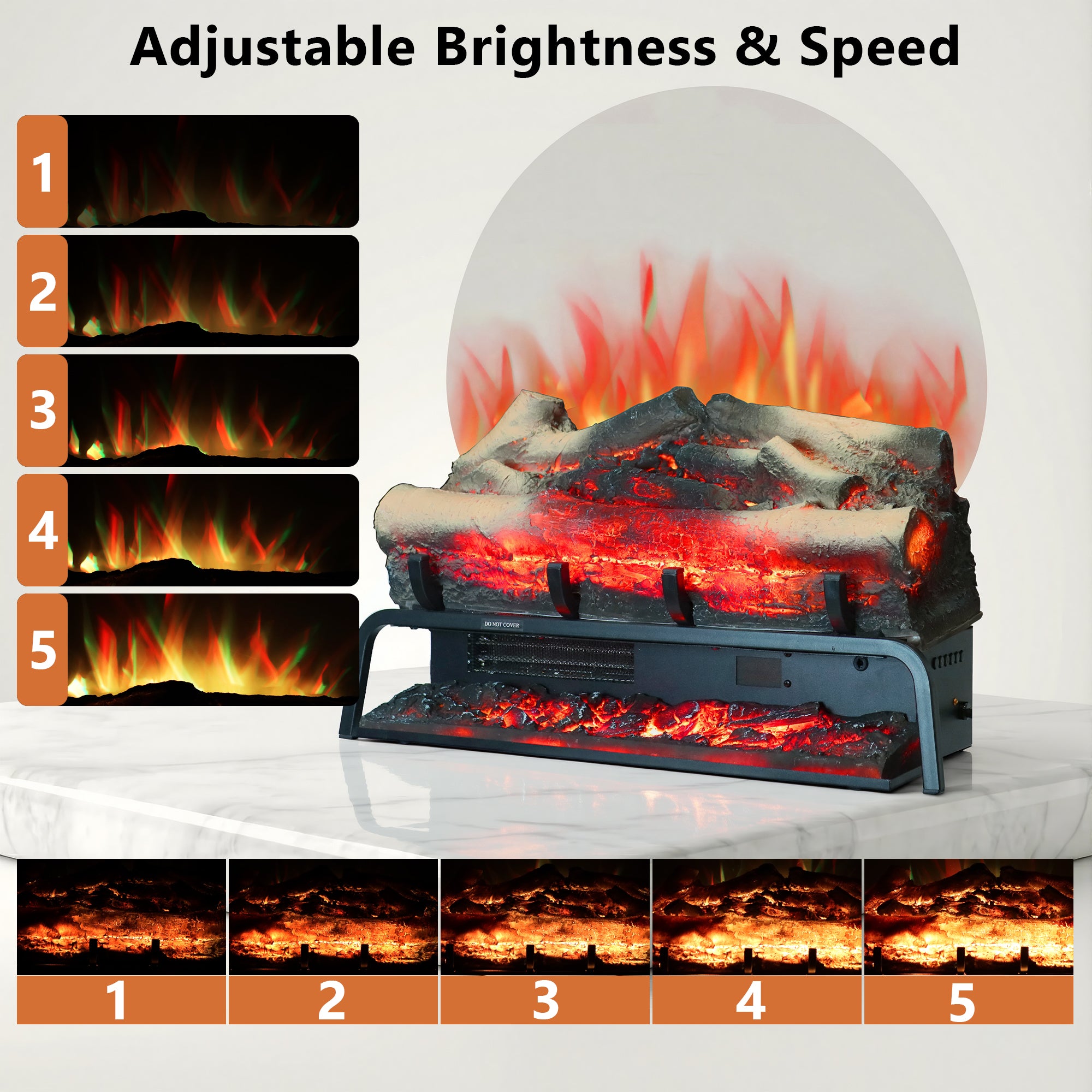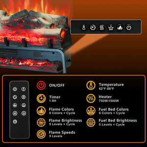 TL 23" Freestanding Electric Fireplace Log Set - Realistic Flame, 6 Colors, 5 Speeds & Timer